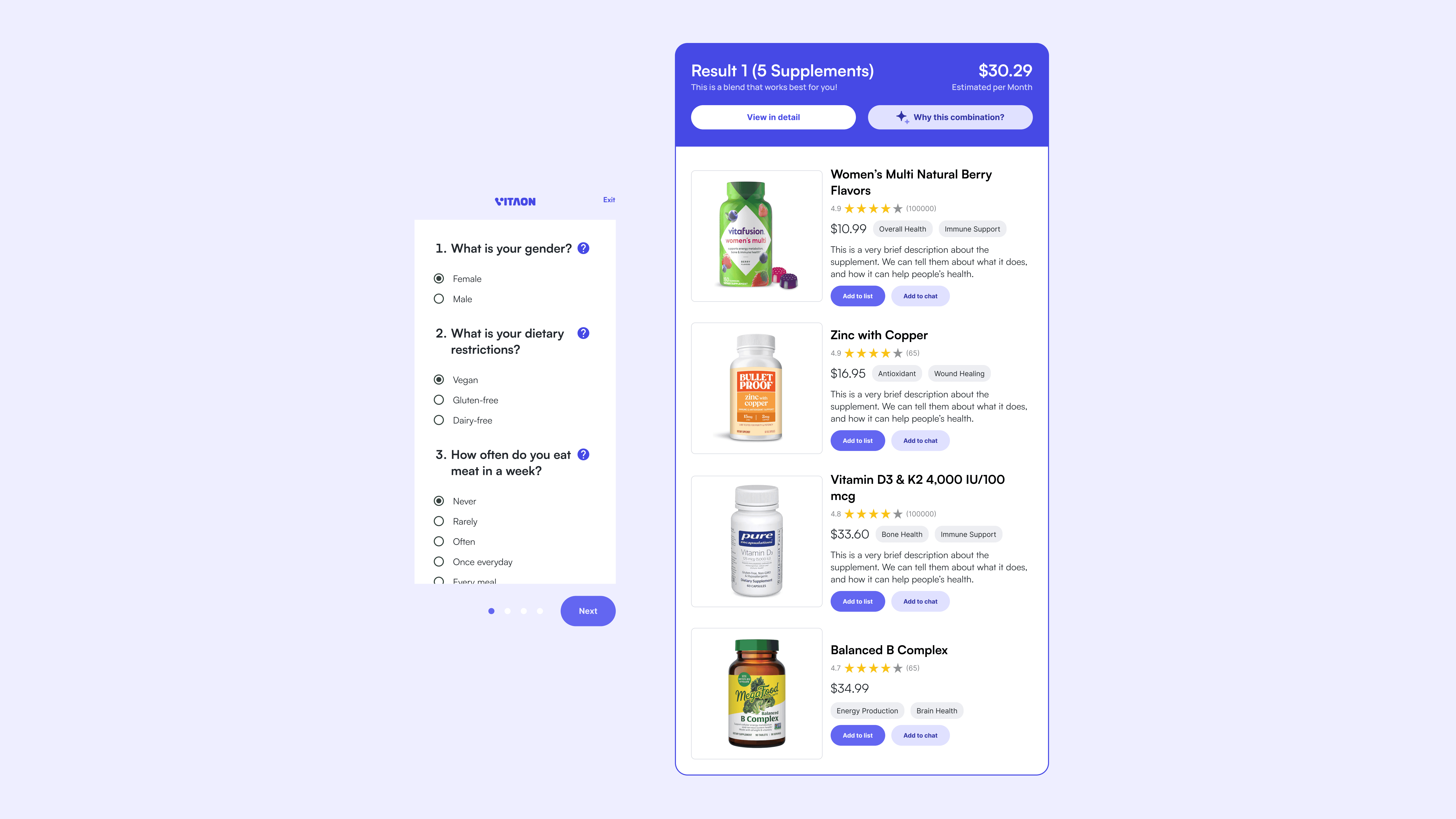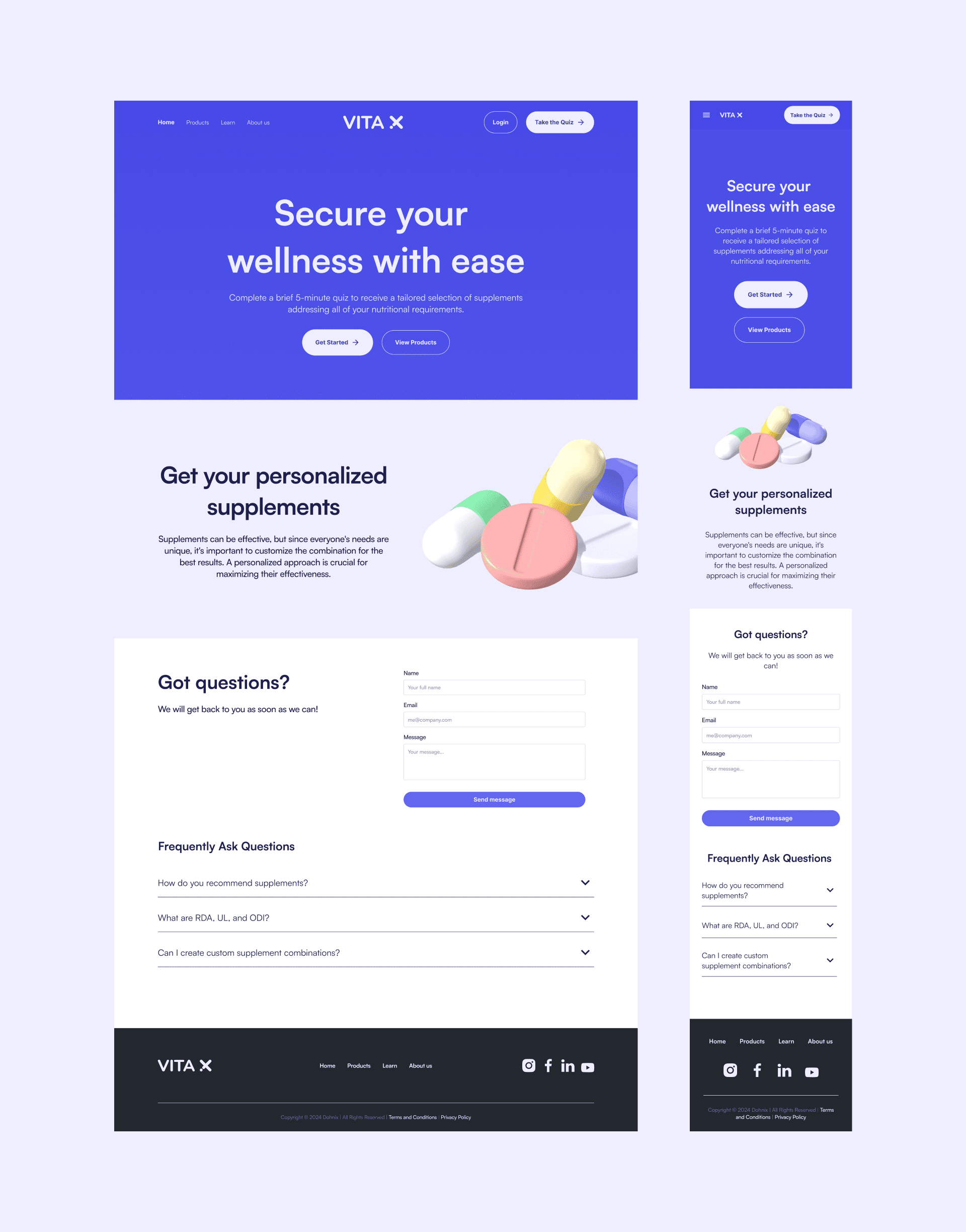 As one of first design hires, I built VitaOn's brand and web platform end-to-end, delivering personalized supplement recommendations that simplify health data for users